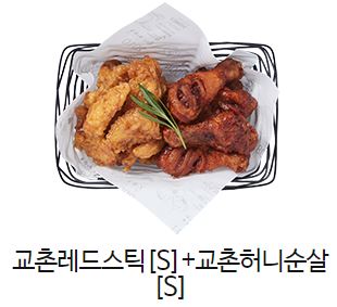 허니와 레드 반반을 찾으시는 분들도 계시는데요. 교촌레드스틱[S]+교촌허니순살[S]라는 메뉴가 있습니다. 이는 교촌레드스틱 반 마리 그리고 교촌허니순살 반 마리 구성으로 레드와 허니를 한 번에 즐길 수 있다는 점이 큰 장점이고 가격은 21500원입니다.